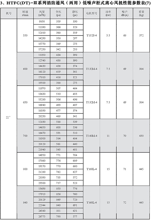 HTFC(DT)-I消防低噪声柜式离心风机性能参数